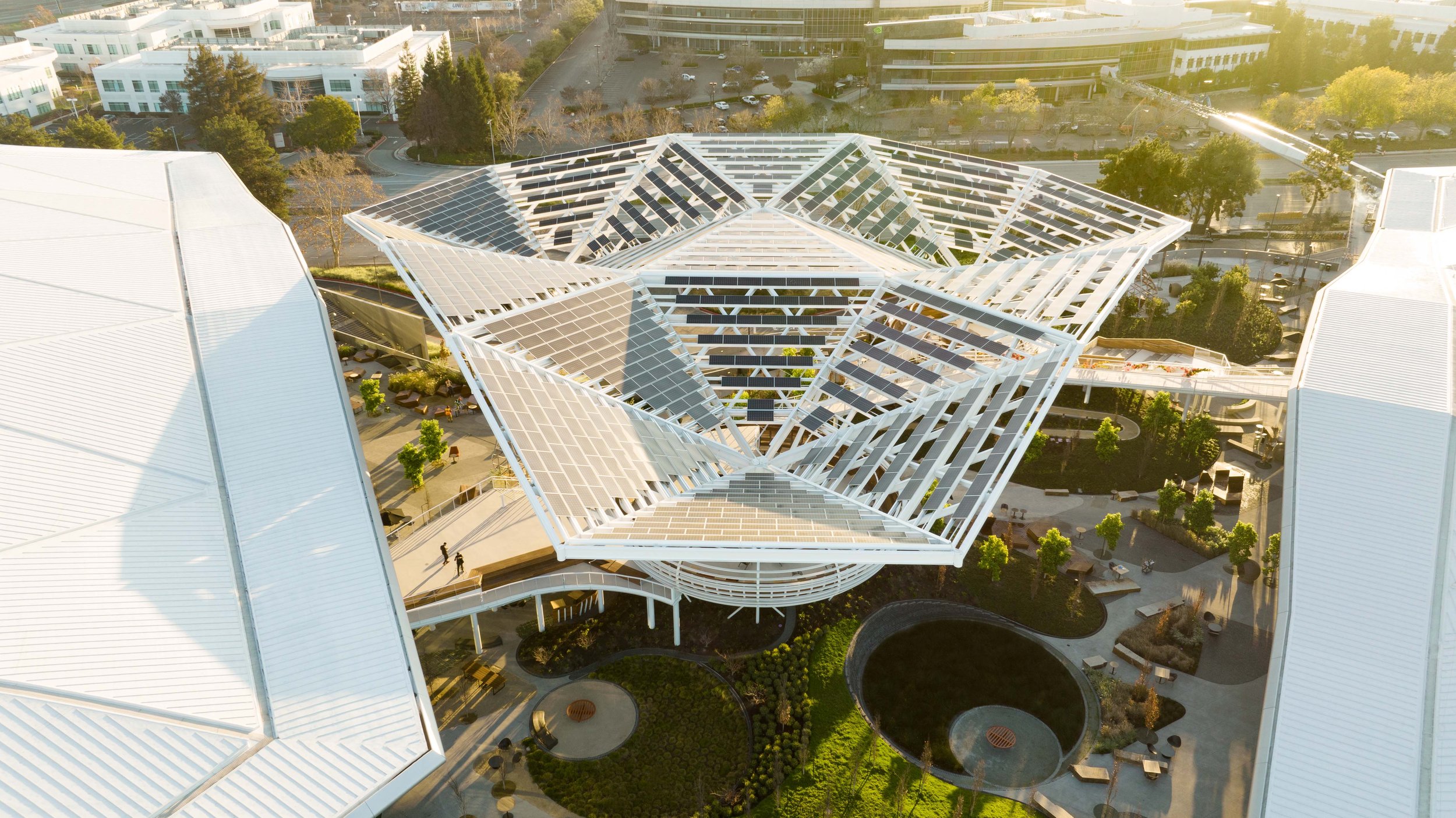 NVIDIA's campus design features two tree houses that invite staff to step outside, seamlessly extending their workday into the landscape.